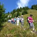 Nach einer ausgiebigen Znünipause auf dem Gipfel, starteten wir unsere Wanderung. Schon recht stotzig war es, aber zum Glück mit Drahtseilen gesichert. So schafften alle den Abstieg. Als wir das steilste Stück hinter uns hatten, schmeckte das Picknick umso besser. Das Beizli für die Kaffeepause war dann nur noch etwa eine halbe Stunde von unserem Ziel Wirzweli entfernt. Niemand war traurig, die restlichen 400 Höhenmeter hinunter ins Tal nach Dallenwil nicht mehr zu Fuss, sondern mit der Seilbahn zurücklegen zu dürfen.