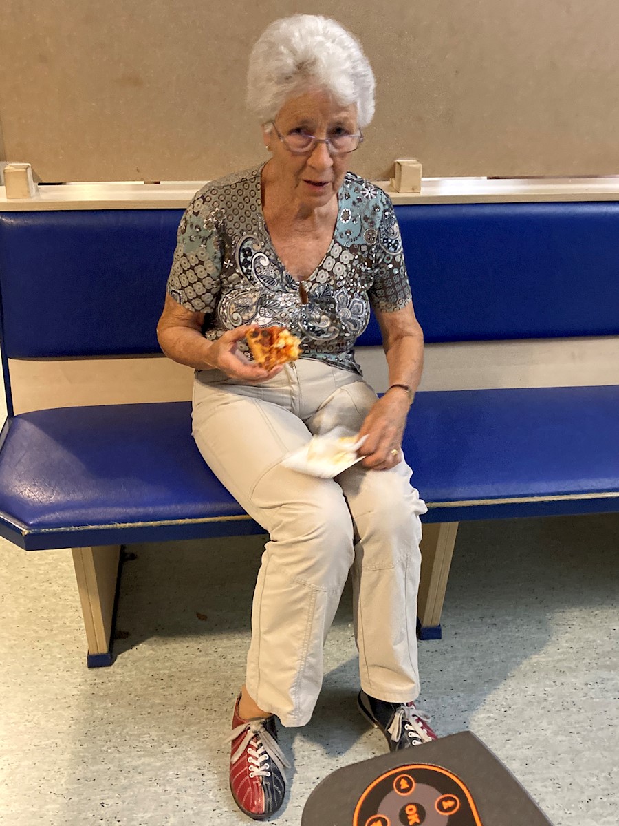 Am letzten Donnerstag vor den Herbstferien war statt Turnen Bowlen angesagt. 24 Frauen stellten sich dieser Herausforderung und freuten sich auf einen gemütlichen Abend. Die erste Hürde, die Zertifikatskontrolle, überwanden alle spielend, die zweite war das Anmelden der Gruppen beim Bowling Computer. Aber auch das war mit etwas Hilfe vom Chef kein Problem. Schwieriger wurde es nun beim Versuch möglichst viele Kegel mit blauer, grüner, violetter oder gelber Kugel zu treffen. Manchen Nuller und ab und zu sogar einen Volltreffer zeigte der Bildschirm an. Damit wir bei Kräften blieben, wurden wir mit feinen Pizzastücken verwöhnt. Alle griffen tüchtig zu und liessen es sich schmecken. Es war ein lustiger, gemütlicher Abend, schön, dass solche Anlässe wieder möglich sind. Vielen Dank dem Vorstand für die gute Idee und für das Organisieren.